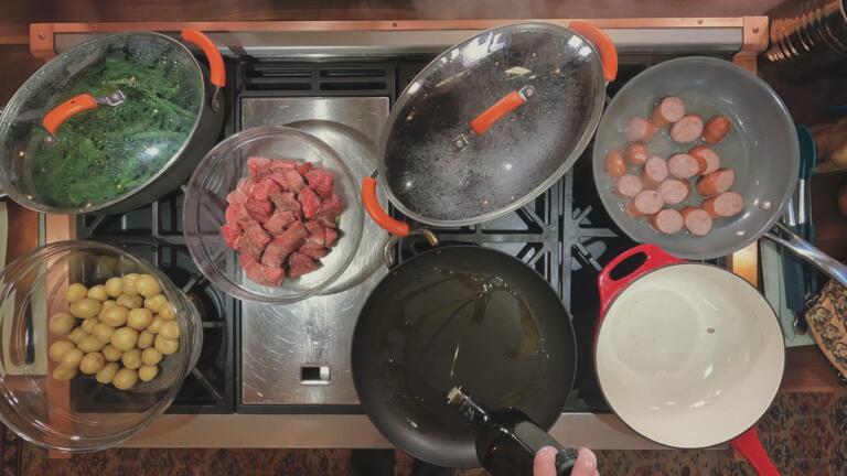 Cheese Fondue with Vegetables, Sausage and Beef Tips