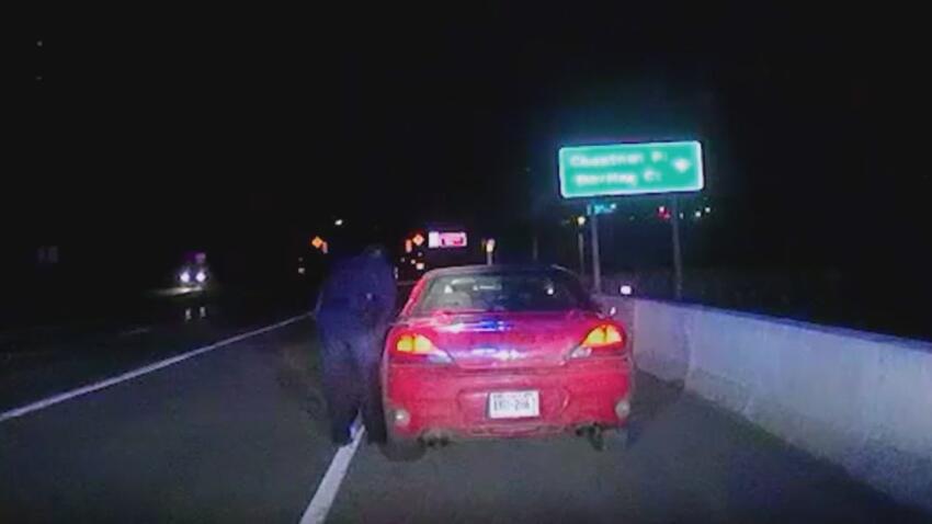 After being pulled over for speeding, a driver suddenly flees the scene at a high speed, in this scene from Season 2, Episode 2.